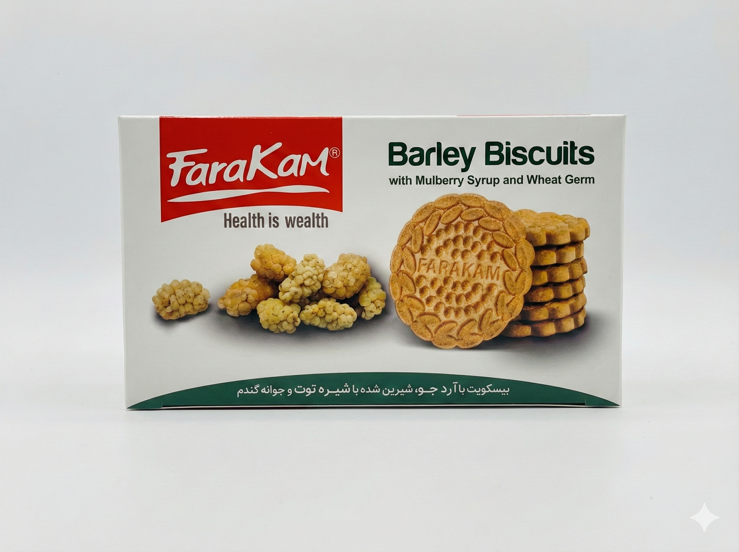 بیسکویت جو با جوانه گندم و شهد توت کامور