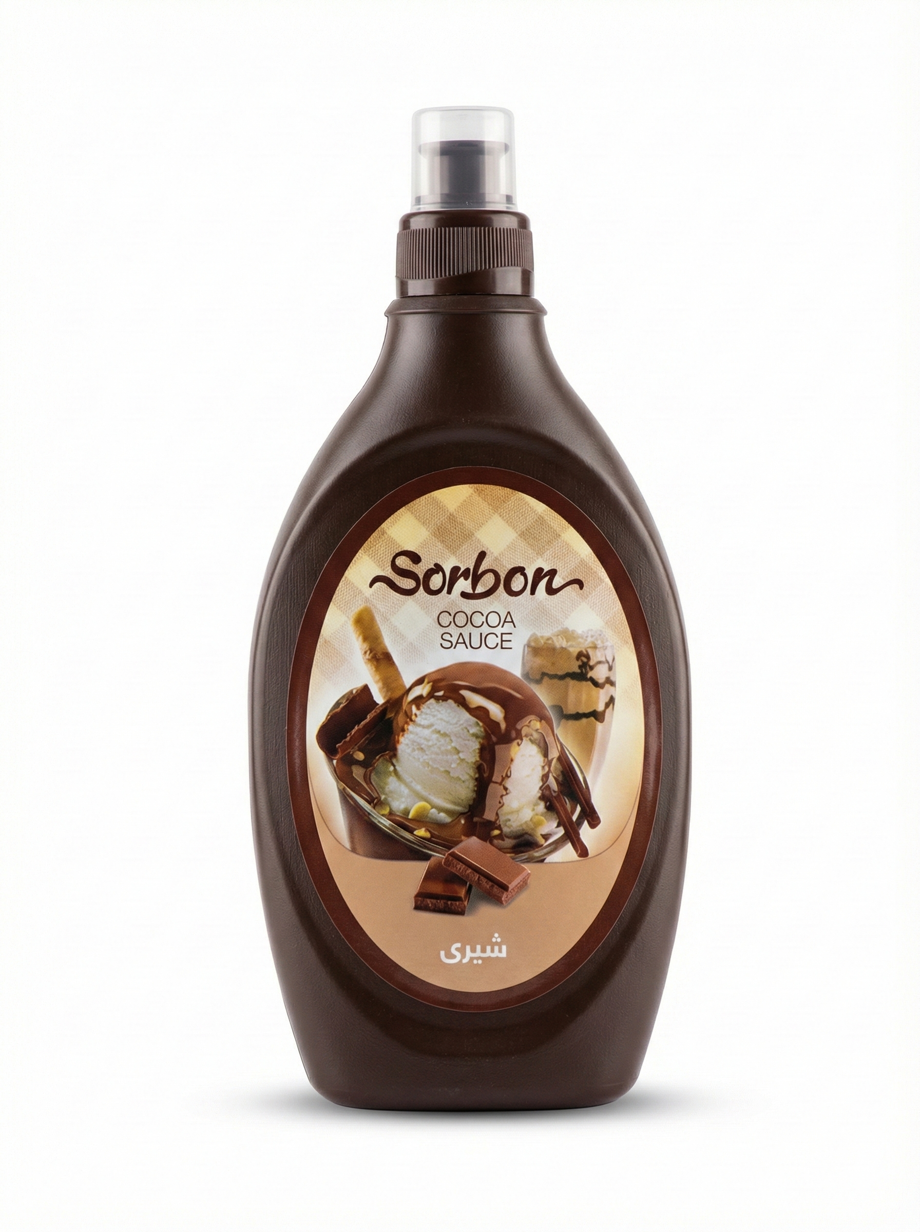 سس شکلات شیری سوربن با بافتی روان، غلیظ و براق، طعمی شبیه به کرمکاکائو دارد و به دلیل طراحی بطری فشاری، استفاده از آن بسیار آسان و تمیز است.
